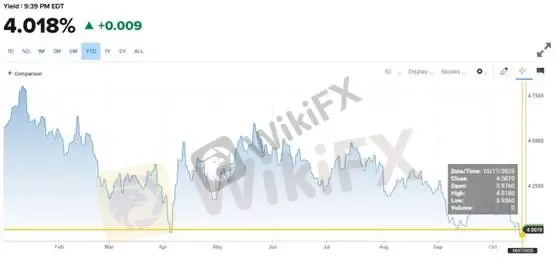 (Hình 1: Lợi suất trái phiếu kho bạc Mỹ kỳ hạn 10 năm giảm xuống dưới 4,0%; Nguồn: CNBC)