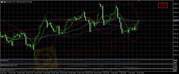 週一(1/10)黃金回升至1800.00美元上方,因交易商對沖通脹和持續的地緣政治風險。另美元上漲勢頭有所減弱,亦提振了投資者對黃金的需求。目前黃金已站上1800.00美元關口,4小時圖K線升穿50天線向保力加上軌推進,保力加通道口開始收窄,短期進入震盪週期,橫向的時間或會變長。上方阻力1820.00美元阻力,下方支撑1780.00美元。