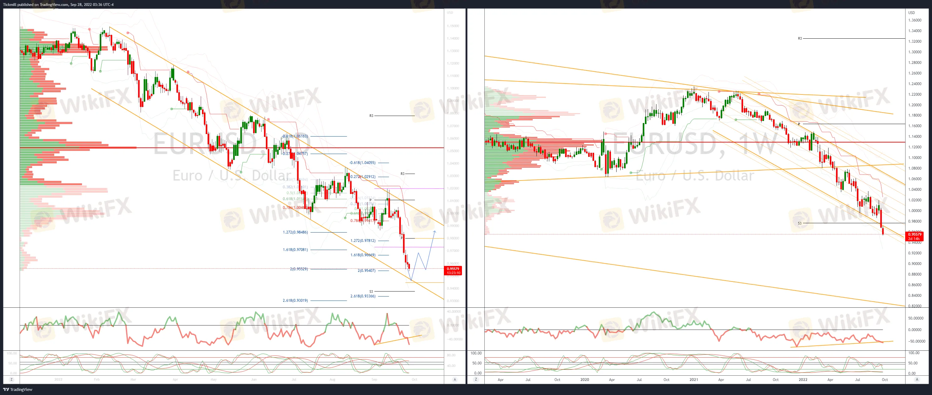 欧元/美元低于周二低点 0.9570,支撑位在周一低点 0.9528
