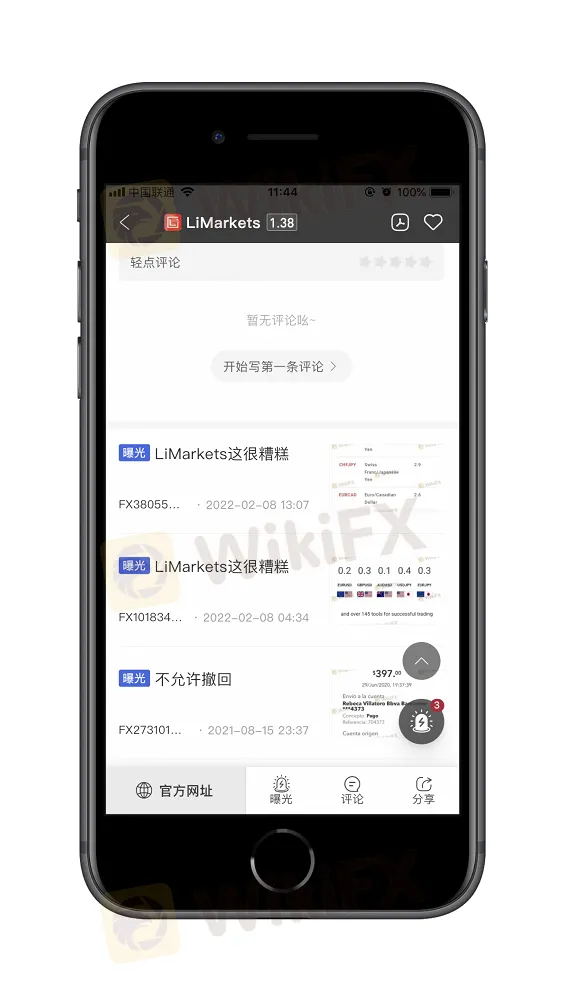 近日,有一位投资者向外汇天眼投诉在LiMarkets平台投资,但是近期想出金却一直联系不上平台,向外汇天眼咨询该平台是否靠谱。