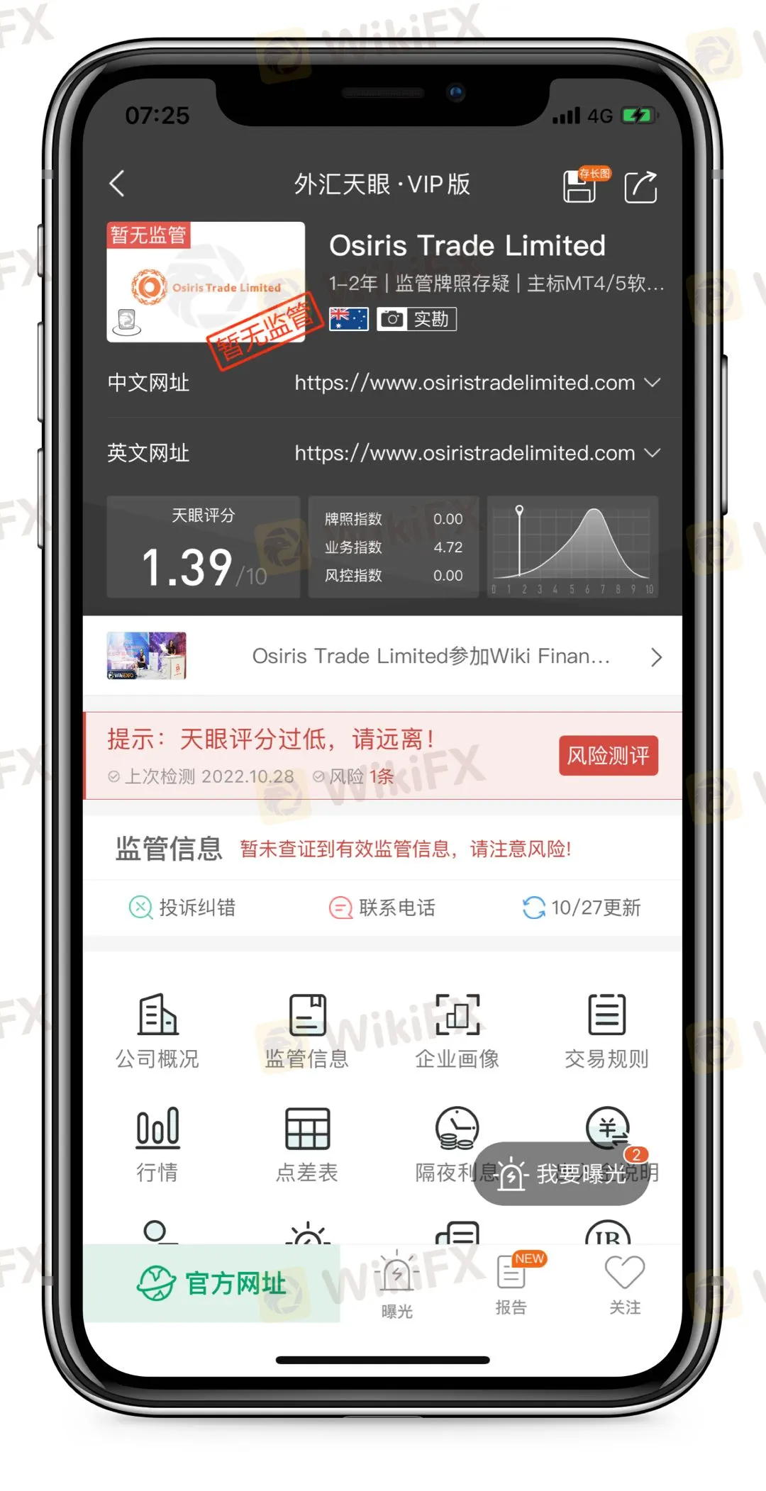 正所谓“投资千万条,出金第一条,平台不规范,被骗两行泪。”外汇天眼也在此提醒投资者在做外汇交易之前,一定要审核清楚外汇平台的资质以及官网信息,以防上当受骗。