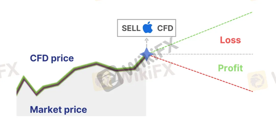例如,如果一位投资者认为苹果股票价格将会下跌,则其可以出售该公司的股票差价合约(CFD)。如果股票价格下跌,该投资者将获得利润;如果价格上涨,则将遭受损失。