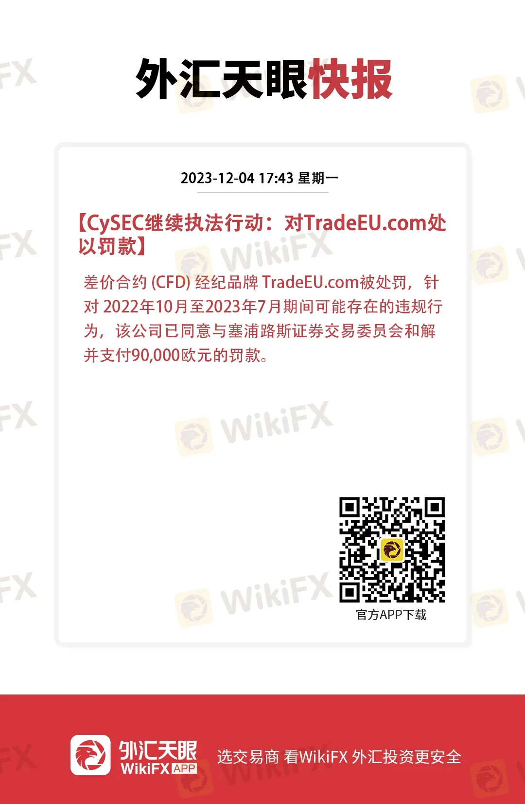 CySEC 继续执法行动:对 TradeEU.com 处以罚款