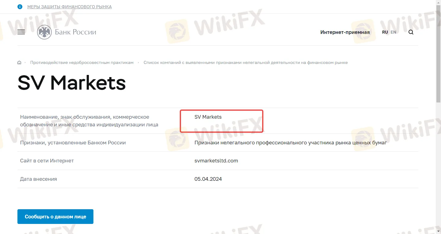 根据俄罗斯央行官网信息显示,2024年4月5日,俄罗斯央行将SV Markets列入该名单,并公布了该公司网址信息:svmarketsltd.com。