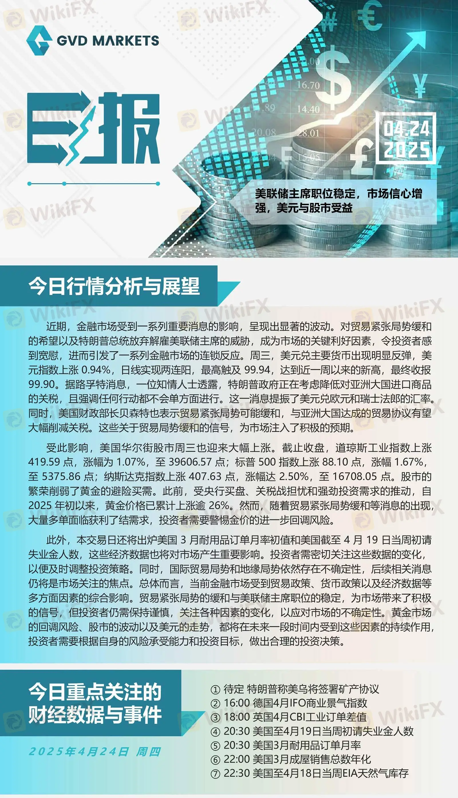 04.24 GVD MARKETS分析报告(美联储主席职位稳定,市场信心增强,美元与股市受益)