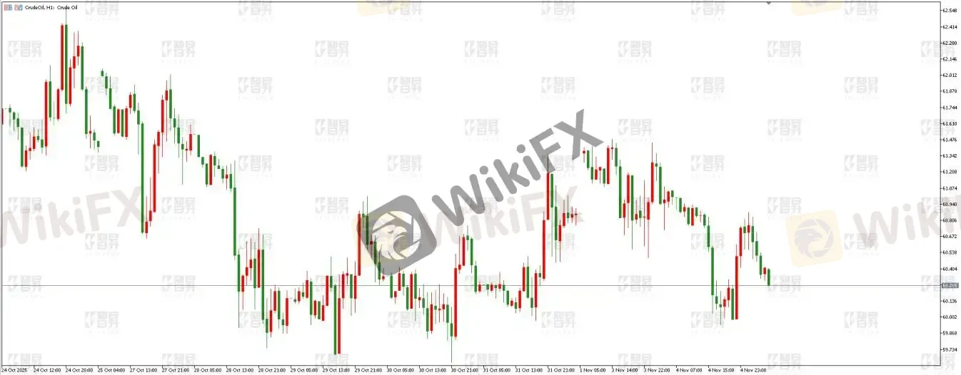 原油日线连收小阴线,上方阻力位压制明显。4小时周期高点不创新高,短线可能形成下降ABC走势,日内可能还有低点,价格可能下破59.40美元一线。