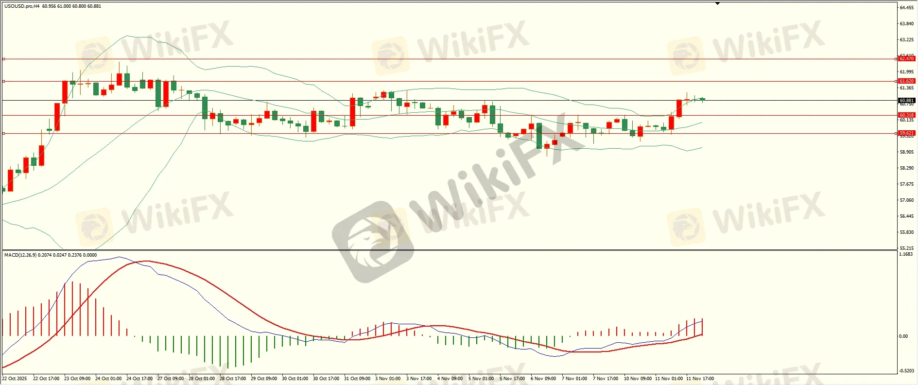原油昨日小幅回调后震荡走高,至收盘触及第二阻力略有反复,日线报收中阳线,收盘位置触及前阻力,收复后本轮反弹方可继续,从4H来看,布林中轨拐头向上,MACD零轴附近运行,日内下方首要支撑60.30,第二支撑59.60,上方阻力61.60,62.45,保持在第一支撑上方短线有望测试第一阻力。