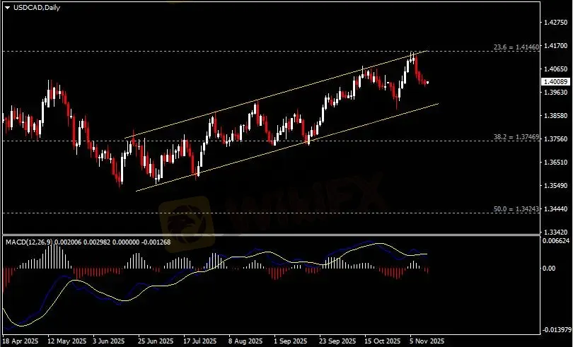日线图显示美元兑加元震荡走弱,当前承压于上行通道顶线。从MACD来看,快慢线死叉依旧,红色动能柱温和增量。汇价走势基本和动能柱的变化一致。