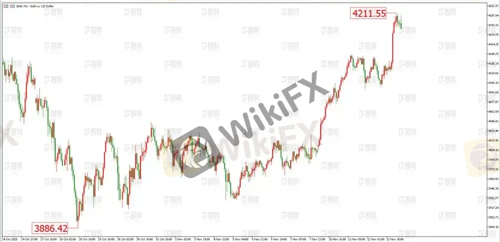 黄金昨日(11月12日)延续上涨,一度突破4200美元,日线四连阳。小时图来看,上涨结构完好,进一步上涨的概率大。上方可以看向4250美元一线,日内关注4155美元的多空分界线。