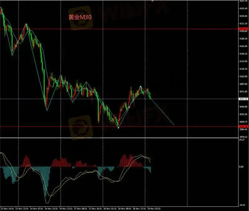 M30图表日内空头最大的风险在于,金价直接上破4080关口;当前空头持续中,多头暂时回避。