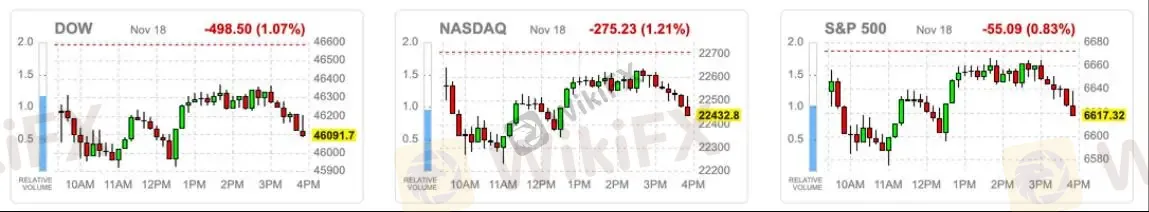 然而这种「循环式 AI 资本流」再次引发市场对科技巨头高估值的担忧,避险资金升温、VIX 飙升逾 10%,科技股快速回调。尽管盘中有买盘进场带动指数反弹,但科技压力仍主导大盘,最终纳指收跌 1.21%,费半大跌 2.31%。