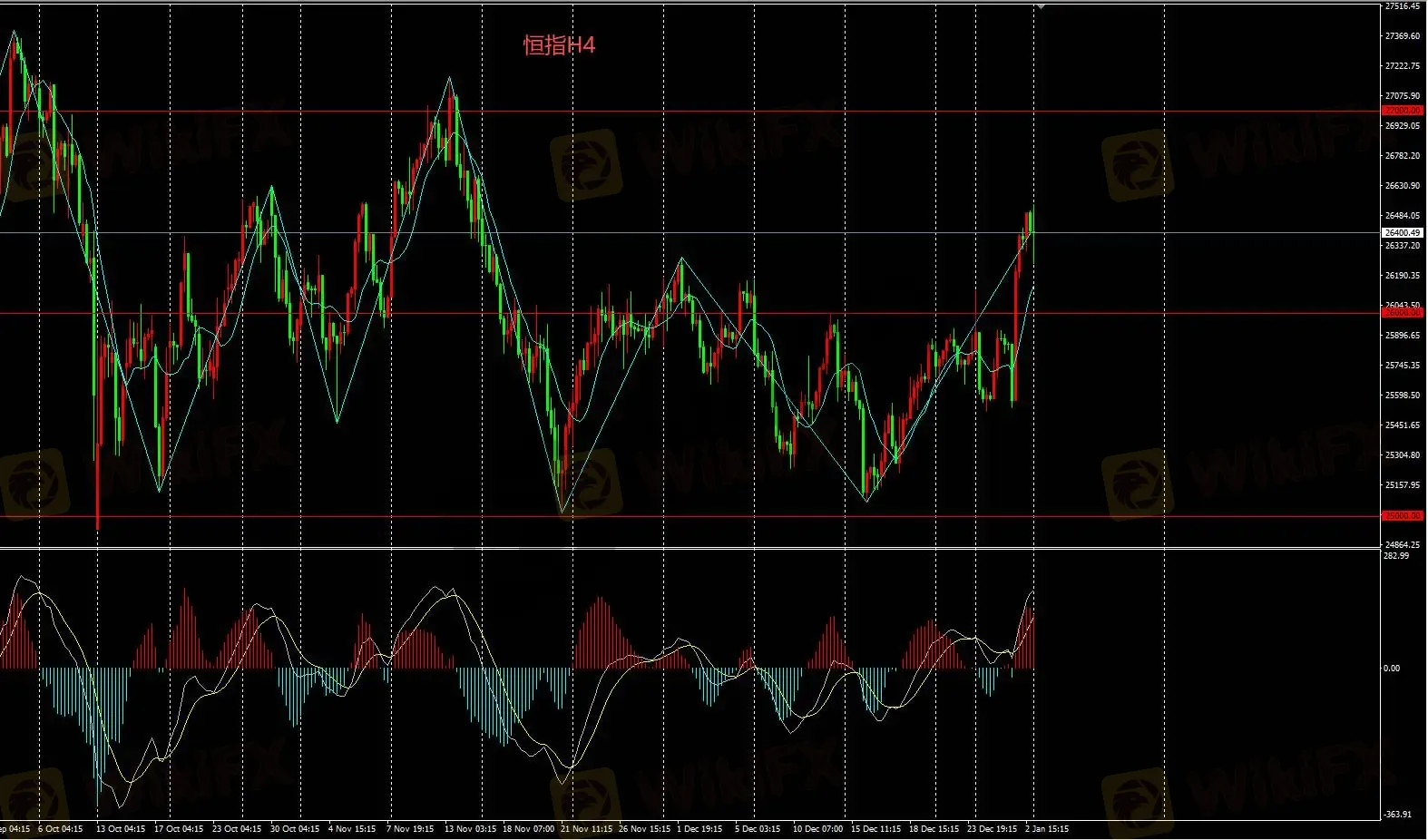 恒指H4空头需等待价格下破26000,目标25500。