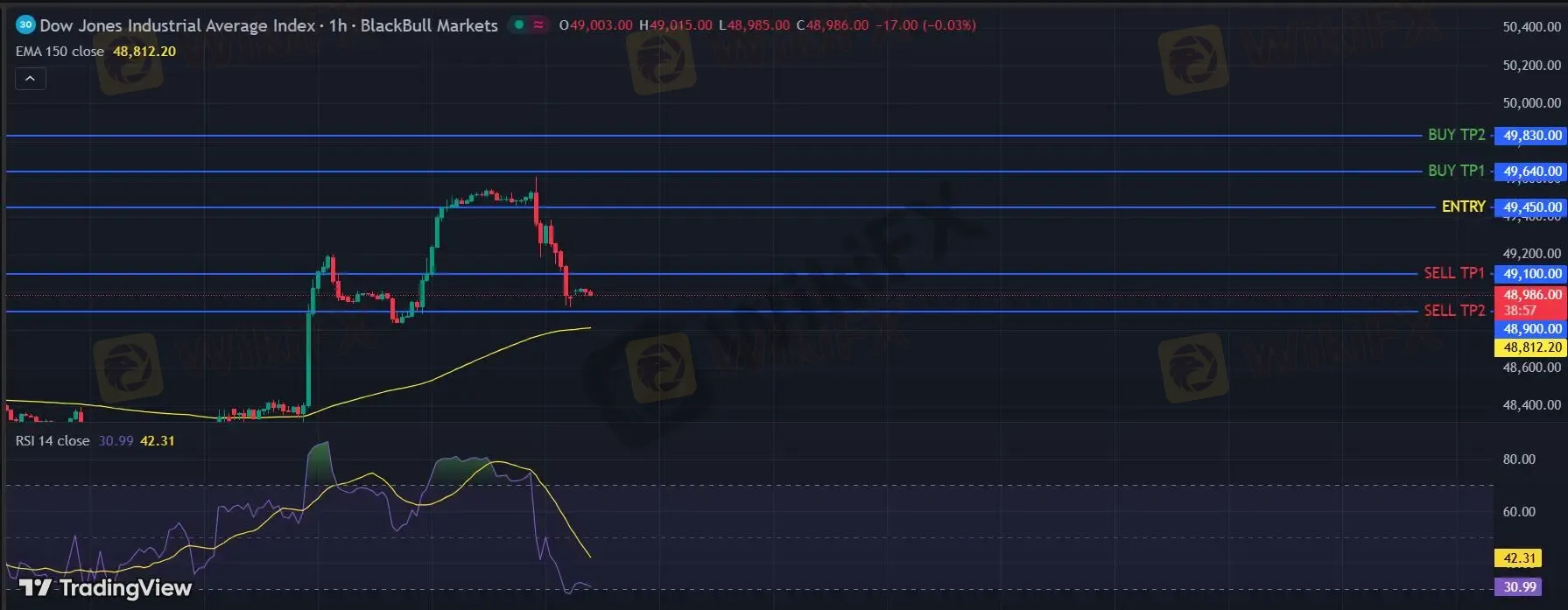 在 49450 之下,看跌,目标价位为 49100 ,然后为 48900 。
