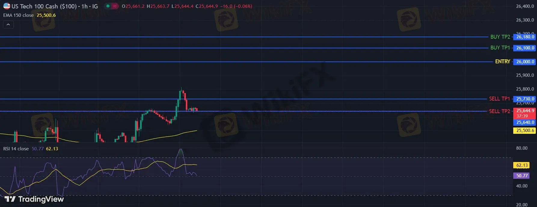在 26000 之下,看跌,目标价位为 25730 ,然后为 25640 。