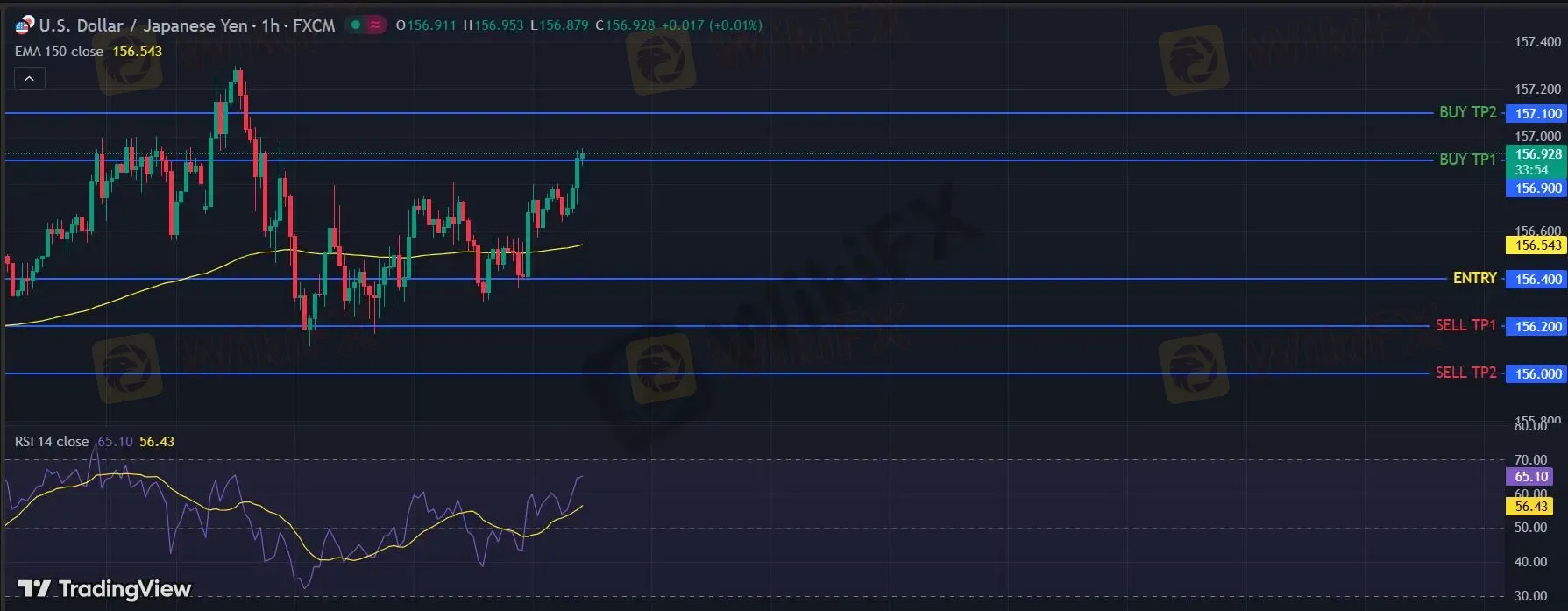 在 156.40 之上,看涨,目标价位为 156.90 ,然后为 157.10 。