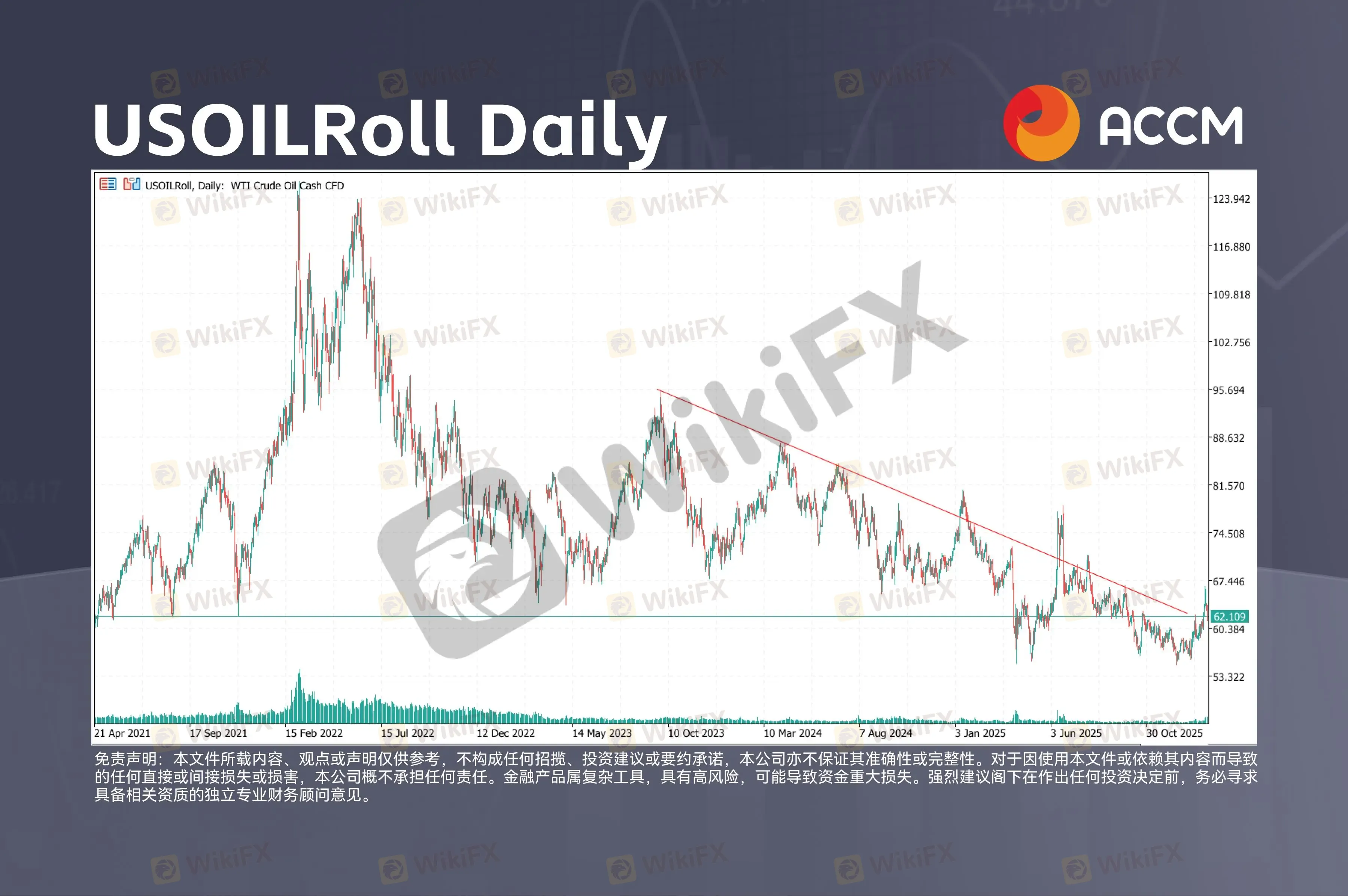 USOILRoll Daily美国 WTI 原油期货下跌 4.5%,至 62.30 美元/桶;英国布伦特原油期货下跌 4.3%,至 66.35 美元/桶。