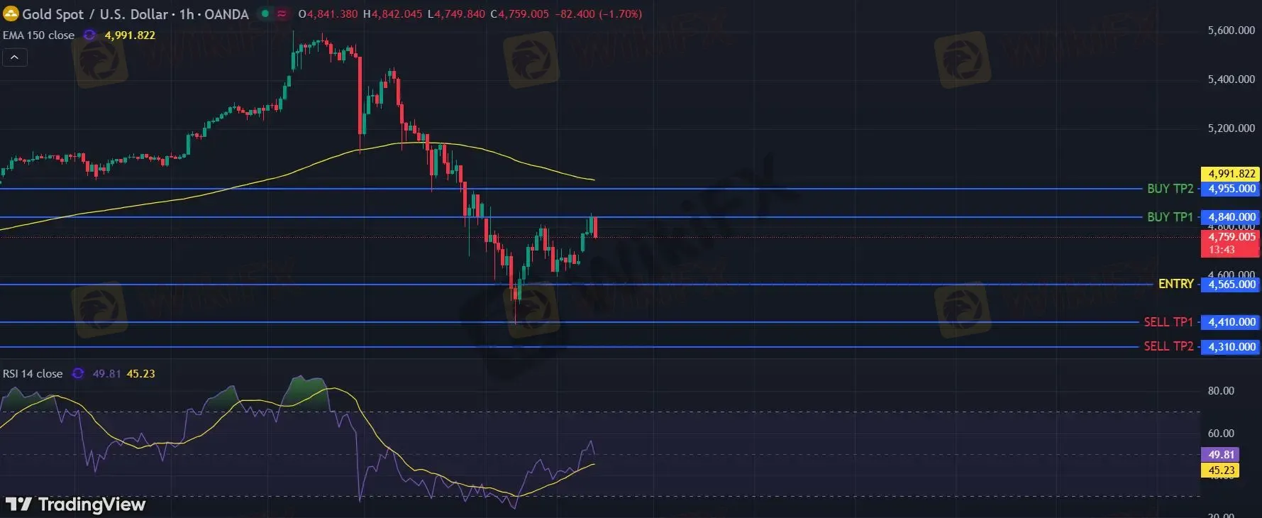 黄金现货 当日内: 期待4840。