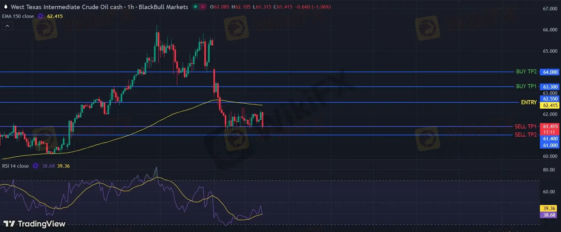 美国原油 (WTI) 期货 (H6) 当日内: 短期关键阻力位在62.55。
