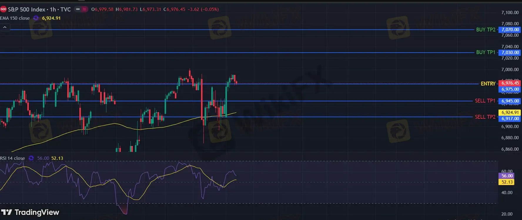 美国标普500指数期货 (H6) 当日内: 目标位为7070。