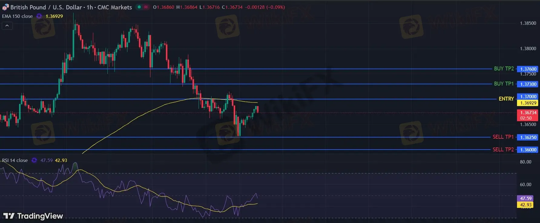 只要1.3700阻力位不被突破,向下跌破1.3625位置的风险很高。