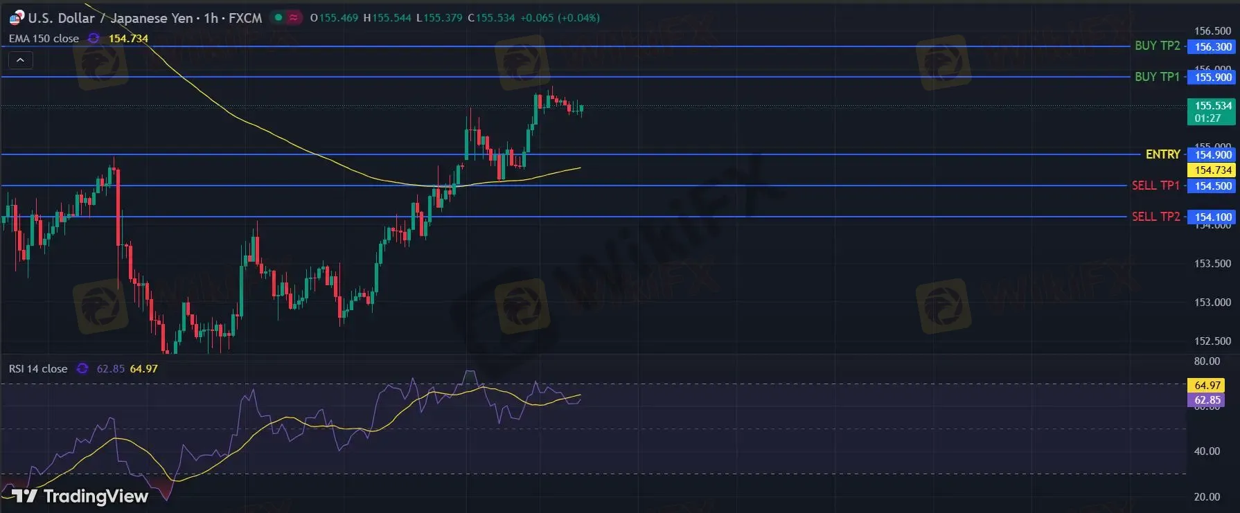 在 154.90 之上,看涨,目标价位为 155.90 ,然后为 156.30 。