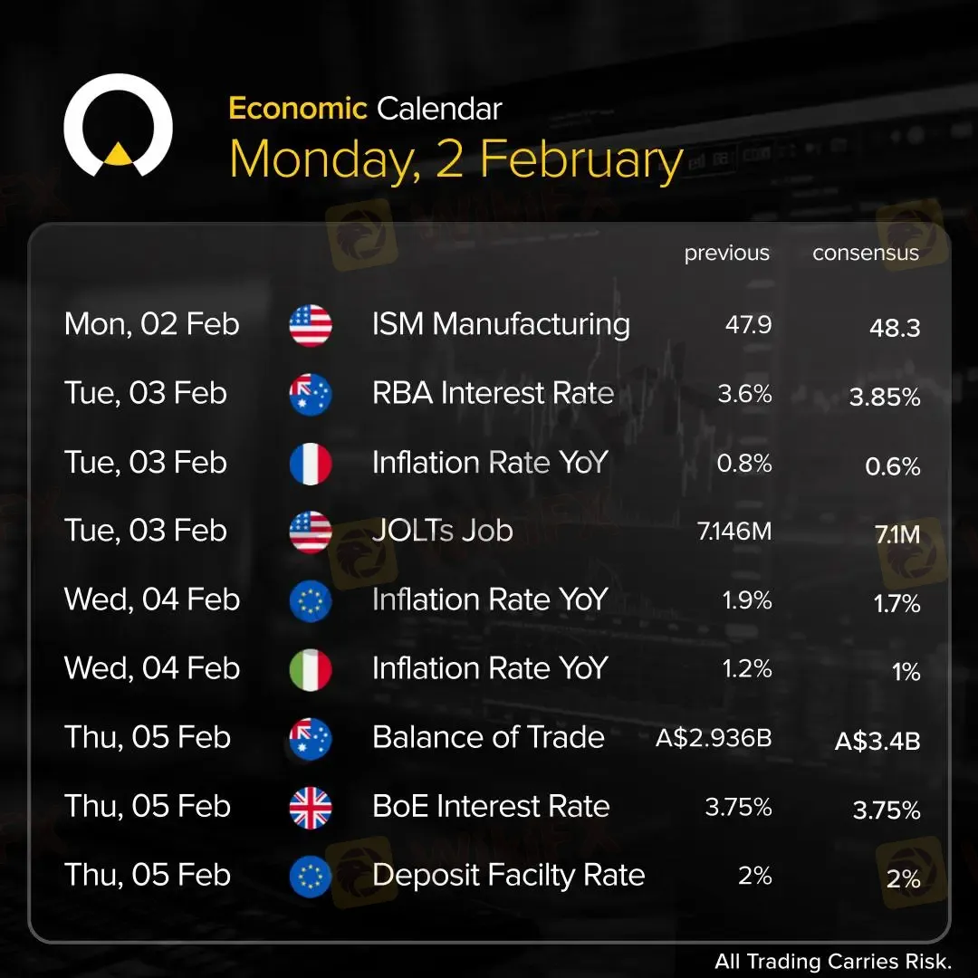 进入2026年2月的第一周(2月2日至8日),全球经济事件将陆续公布,为市场提供新一轮基本面线索。虽然具体事件清单尚未列出,但根据周期性规律,投资者可重点关注以下潜在焦点: