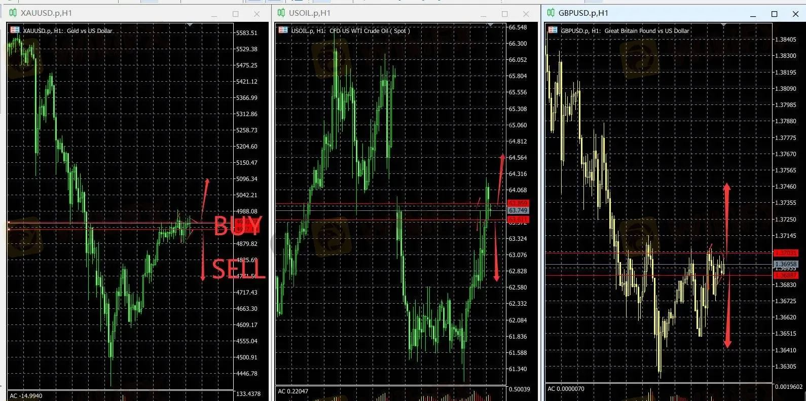 BUY:突破(63.85)寻回调追多,止损SL(0.30美元),止赢TP(64.40/64.70/65.00)。