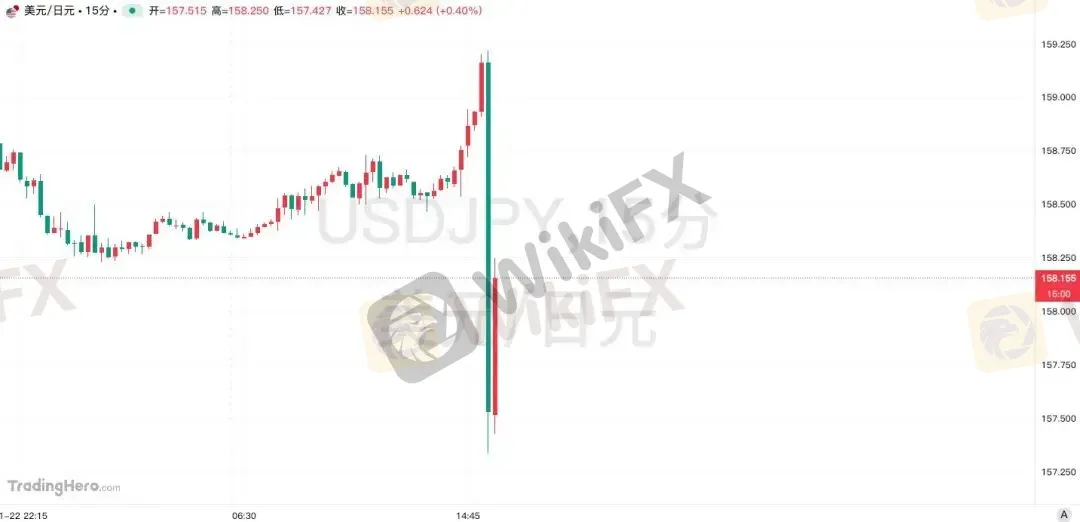 1月23日,日本央行维持利率不变后,日元最初走弱。然而,在行长植田和男新闻发布会期间,盘中突然跳涨,美元兑日元一度跌至157.33,较日内高点下挫近200点(消息来源:金十数据1月23日外汇板块)。