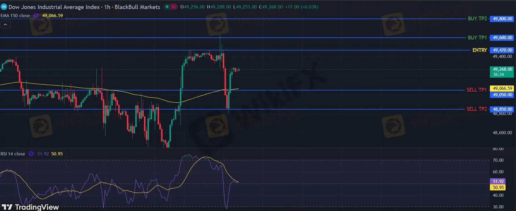 在 49470 之下,看跌,目标价位为 49050 ,然后为 48850 。