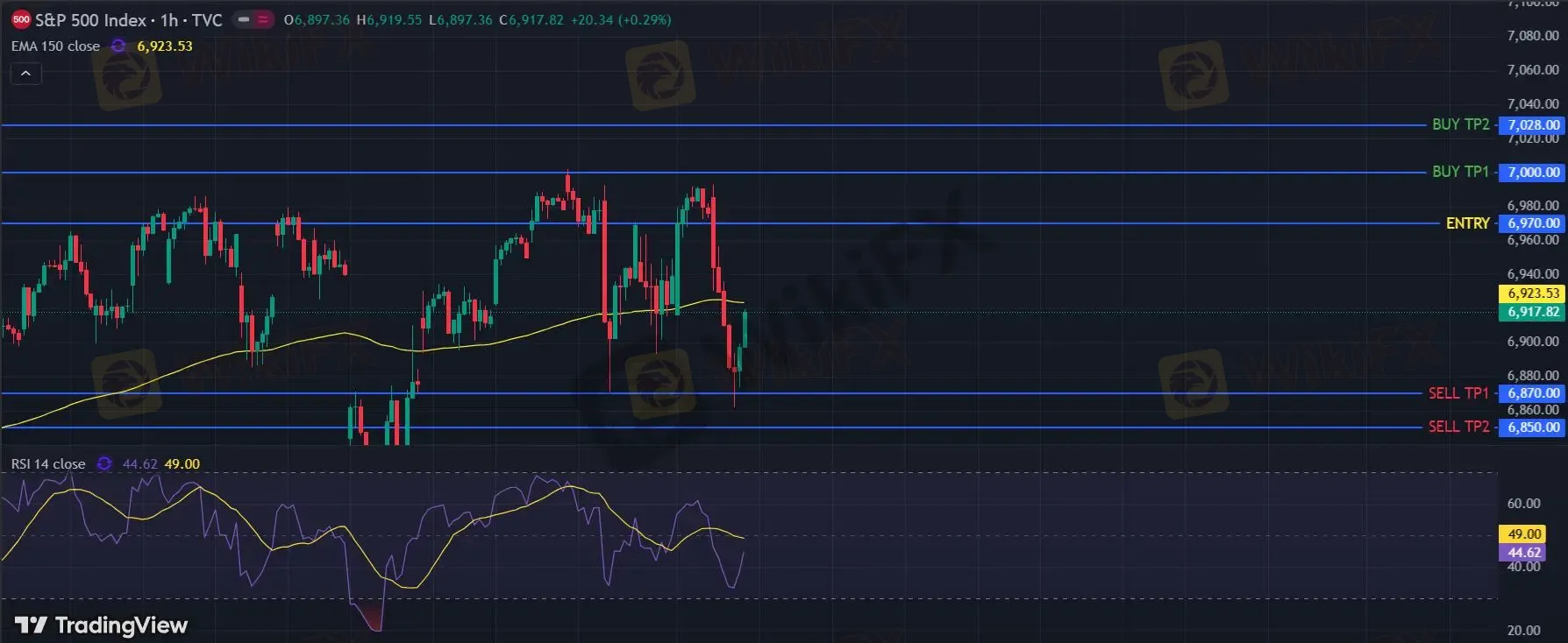 美国标普500指数期货 (H6) 当日内: 短期关键阻力位在6970。