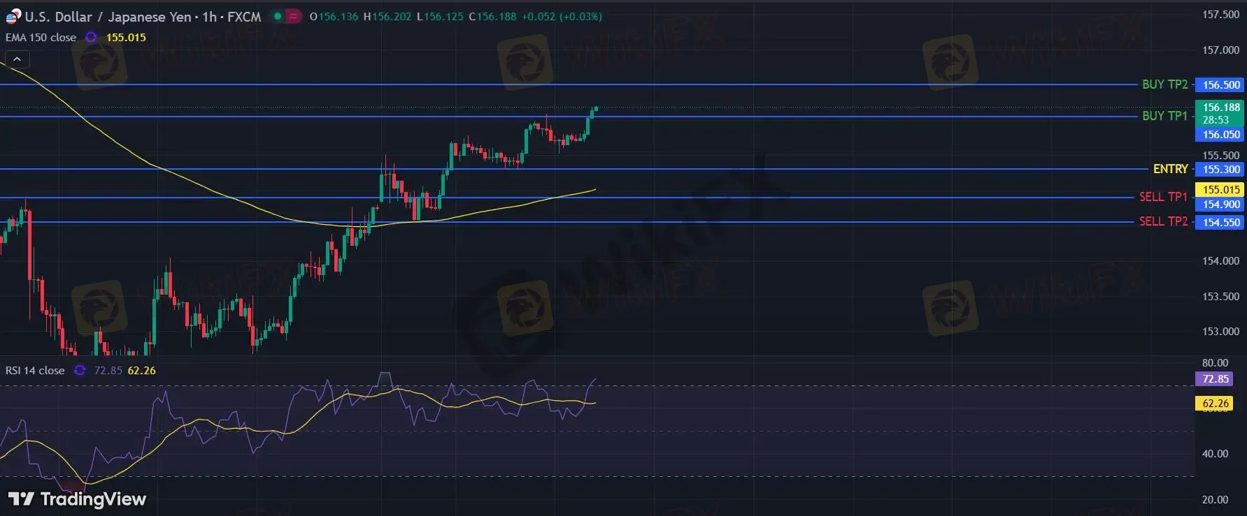 在 155.30 之上,看涨,目标价位为 156.05 ,然后为 156.50 。