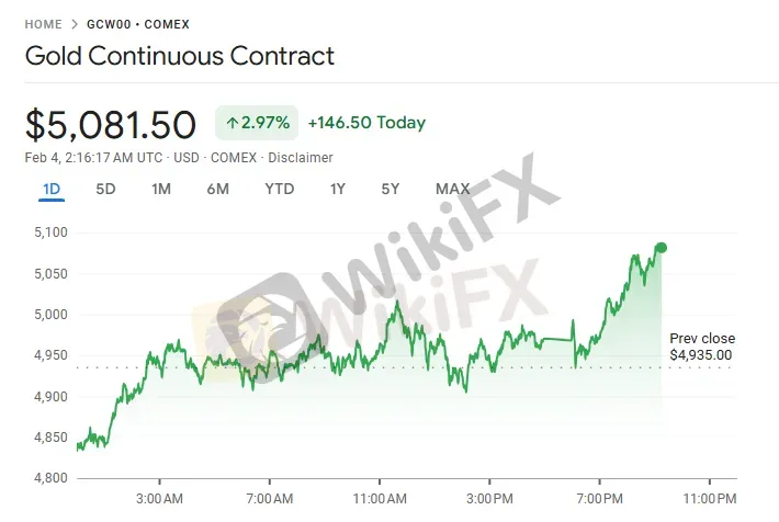 黄金价格反弹至 5,000 美元上方,受投资者逢低买盘推动