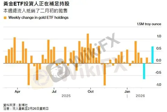 根据彭博社的数据,随着市场稳定,投资人也开始增加持有黄金支持的交易所交易基金(ETF),本周至周四的流入量超过本月初的抛售,显示市场买兴进一步回归,有望支撑黄金价格在持稳中寻求更大反弹。