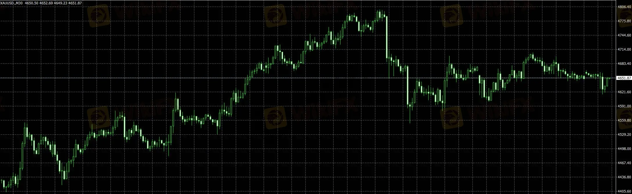 从1小时结构来看,黄金此前完成一轮较为流畅的修复上行,价格一度抬升至高位区域附近。但在触及阶段高点后,上行动能明显放缓,盘面转入横向震荡,并伴随一定回吐,说明上方压力逐步显现。