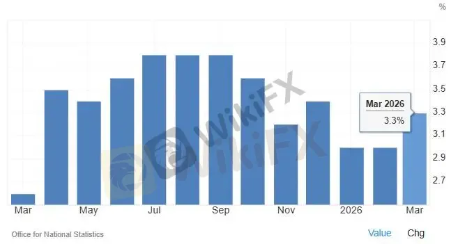 由中东战争引发的通胀回温影响正传导向全球多国——其中,英国3月CPI同比跳涨至3.3%,符合市场预期,此前两个月为3.0%。环比上月,该数据亦从0.4%升温至0.7%,超出市场预期0.6%且创下了去年4月以来最快增速。