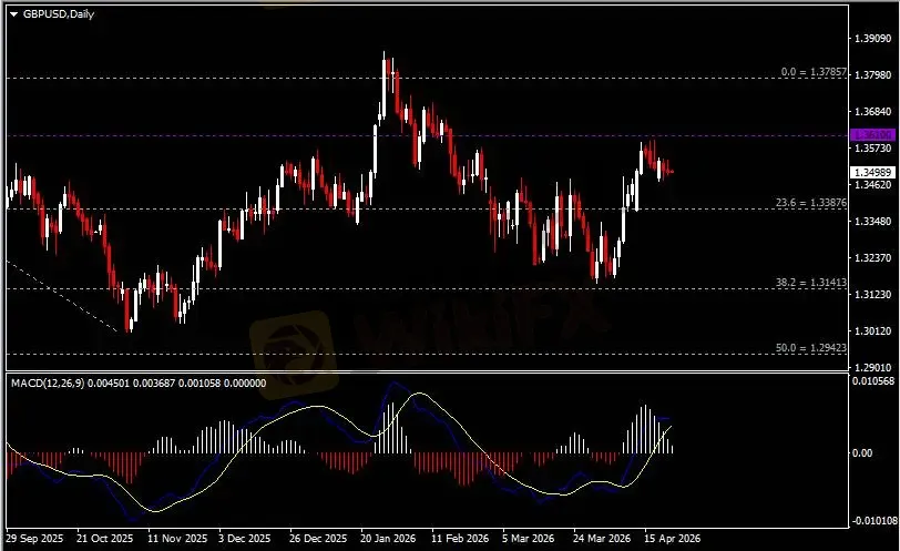 日线图显示美元兑日元于高位区间震荡,当前收于158.90支撑。从MACD来看,快慢线逐渐收窄,红色动能柱温和收缩。汇价走势基本和动能柱的变化一致。
