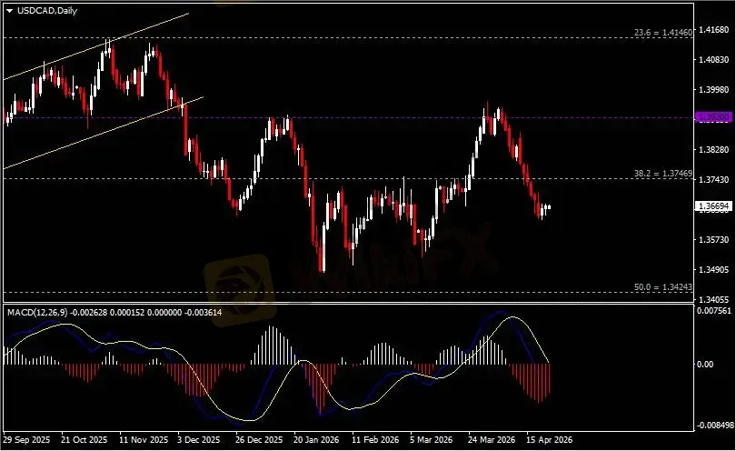 日线图显示美元兑加元温和反弹,当前仍承压于1.3750阻力。从MACD来看,快慢线向下运行,红色动能柱则温和收缩。汇价走势基本和动能柱的变化一致。