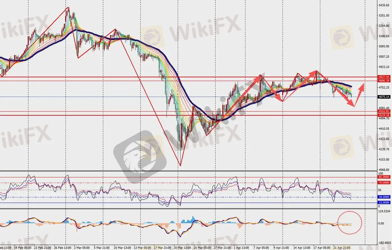 第二阻力位:4712.00 第二支撑位:4643.00