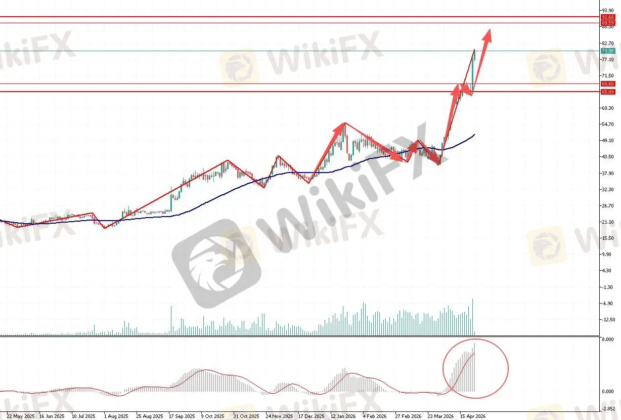 第一阻力位:84.00 第一支撑位:75.00