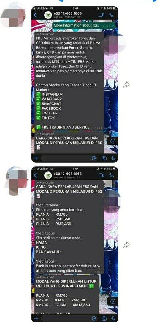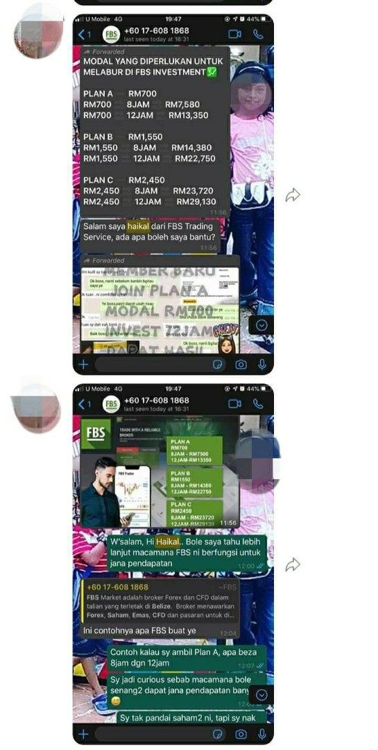 I was offered an investment plan by an agent. Who told me that if i invested $200, within 12 hours he will give me a return of $3500. I was convinced because i trusted the Broker because i've been using it for awhile and there's no issue for me. After i invested, the agent asked me to pay 15% fee of profits. He claimed it was Fund Manager's trading fee and Service Tax. Now the agent blocked me already. Please be aware if there's any agent pretending to work for the Broker and offers investment service, please stay away!