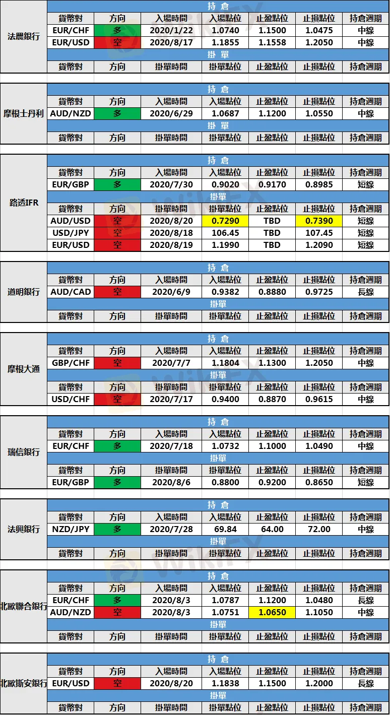 (1)北歐聯合銀行修改澳元/紐元空頭持倉止損至1.0650。
