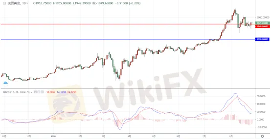 匯信團隊指出,現貨黃金昨日收報1953.15美元/盎司,上漲25.34美元或1.31%。日內,現貨黃金最高觸及1954.56美元/盎司,最低觸及1902.22美元/盎司,波動幅度高達逾50美元。今天亞市早盤現貨黃金維持窄幅震盪,金價暫位於1948.42美元/盎司附近整理交投。從日K圖上看,現貨黃金近期持續位於歷史性高位運行,整體呈現出震盪上行態勢,主要是由於疫情影響下的長期寬鬆預期,以及近期市場對於疫情2.0的擔憂,疊加國際貿易局勢以及日趨緊張的地緣政治風險,黃金多頭行情爆發,隨著新冠肺炎疫情病例的大幅增加,市場避險情緒持續升溫,黃金連續攻克1800、1900關口,在地緣政治風險攀升的情況下,疊加超低利率環境和美國新一輪經濟刺 激計畫。黃金高位持續發力,接連大幅飆升,史上首次突破2000大關後一路高歌猛進。不斷刷新歷史新高,此前最高上探至2075一線。但是隨著經濟數據好轉,疫情擔憂減弱,美元走強,貿易方面傳來利好都削弱了市場對於黃金的偏好,而市場期待美聯儲將釋放更為鴿派的信號致使資金率先湧入黃金,助力黃金收復1950關口短線走強,長線投資者需要關注下方的關鍵支撐位這波行情的爆發點1810關口。(僅供參考)