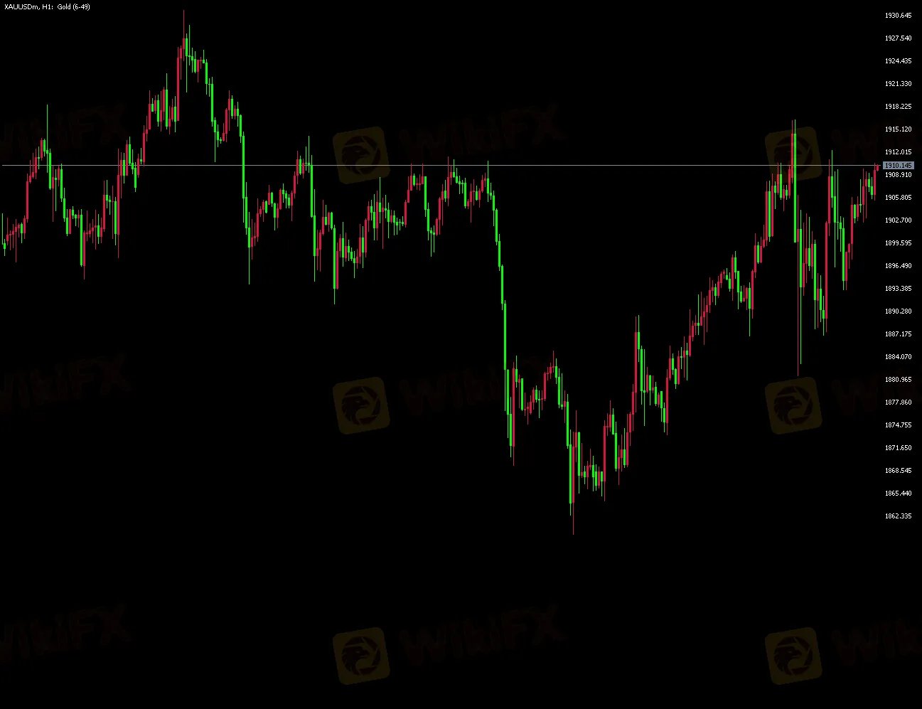 週四(11月5日)現貨黃金緩慢上行趨勢在1915附近被強行打斷,隨後金價曾兩次出現上探,但均在1910附近受阻。目前報1910.14美元/盎司,美元指數最新報93.36。