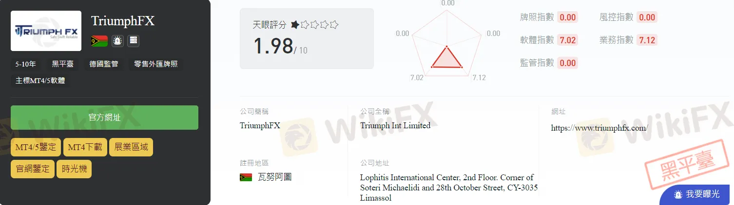 TriumphF還大言不慚自稱是一家國際經紀公司,表示他們在全球範圍內提供最優質的金融和投資服務。堅定地致力於與客戶保持長期關係,並努力為他們的客戶提供行業中最好的服務和最具競爭力的條件。