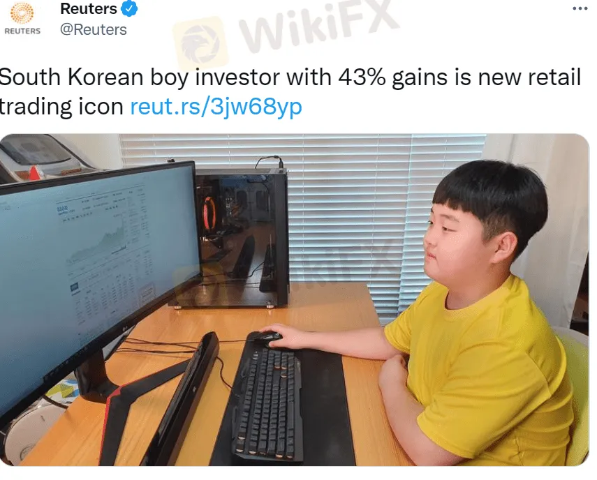 據《路透社》報導,韓國12歲的青少年權俊(Kwon Joon)2020年4月看電視時,聽到財經名嘴說“這是10年難得一見的投資機會”,便說服父母動用2500萬韓元(約人民幣13.5萬元)作為初始資金,買入三星電子、現代汽車等績優藍籌股,結果大賺43%。