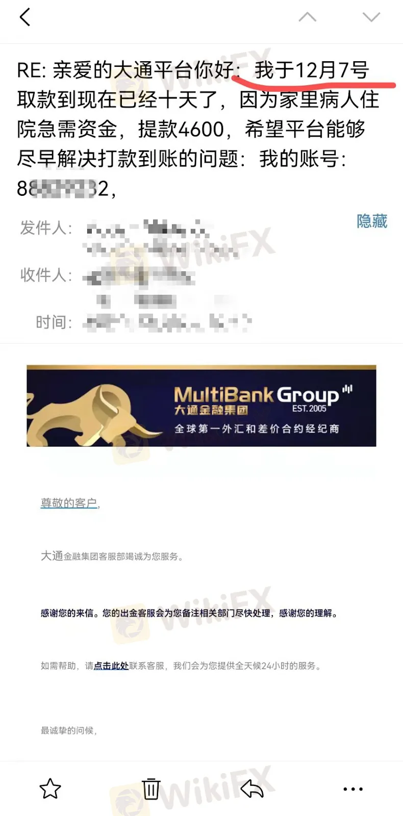 今天的這位主角林小姐,原本想要把錢拿來治療家裡的病人的,可沒想到,竟然遇到了黑平台大通金融,讓他給家人整治的醫藥費,白白地流入了他人的口袋!今天談到的大通金融,已經在外匯天眼被投訴多次,他們是使用什麼手法騙走用戶的錢,接下來就為各位介紹一下!